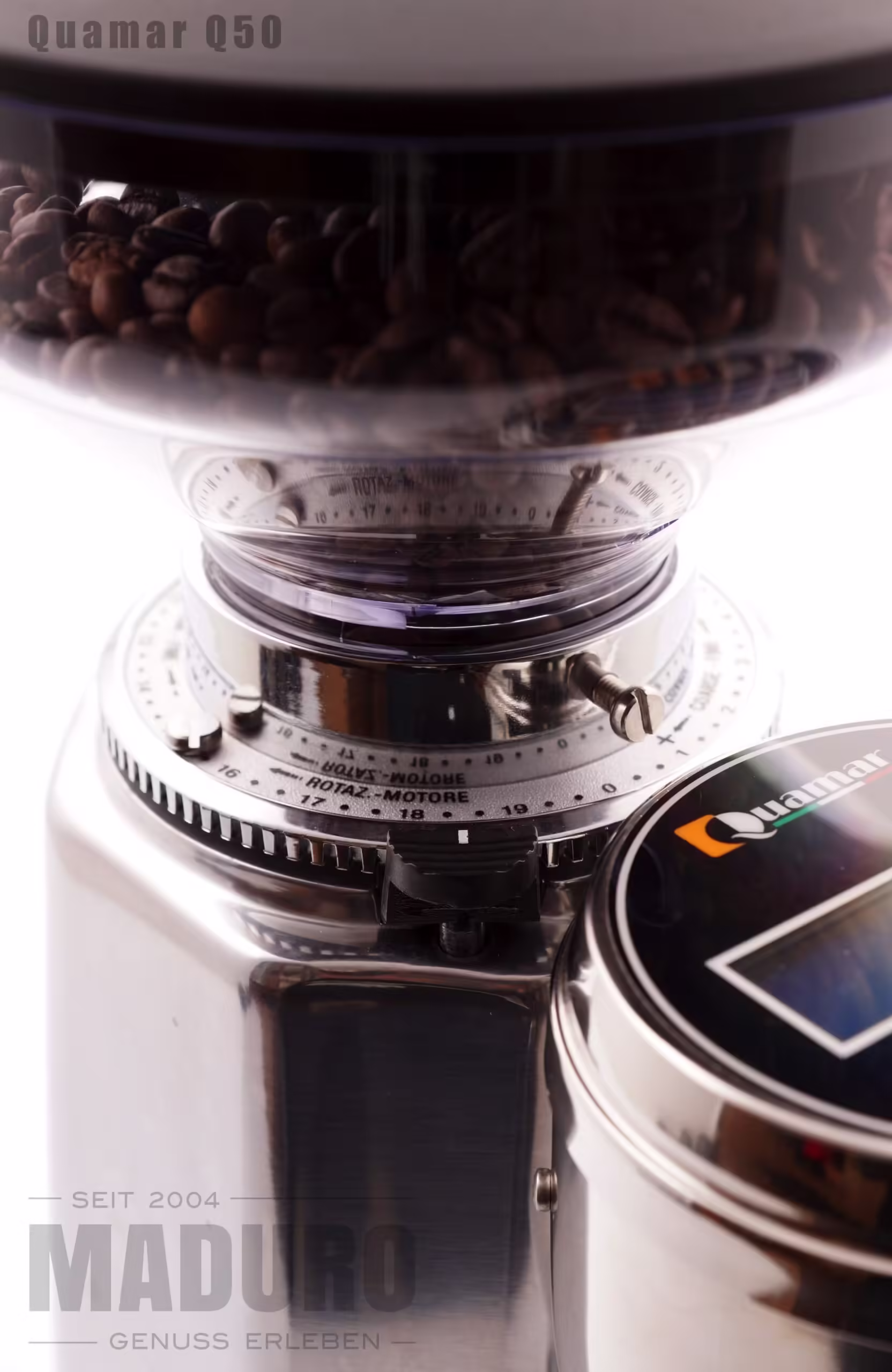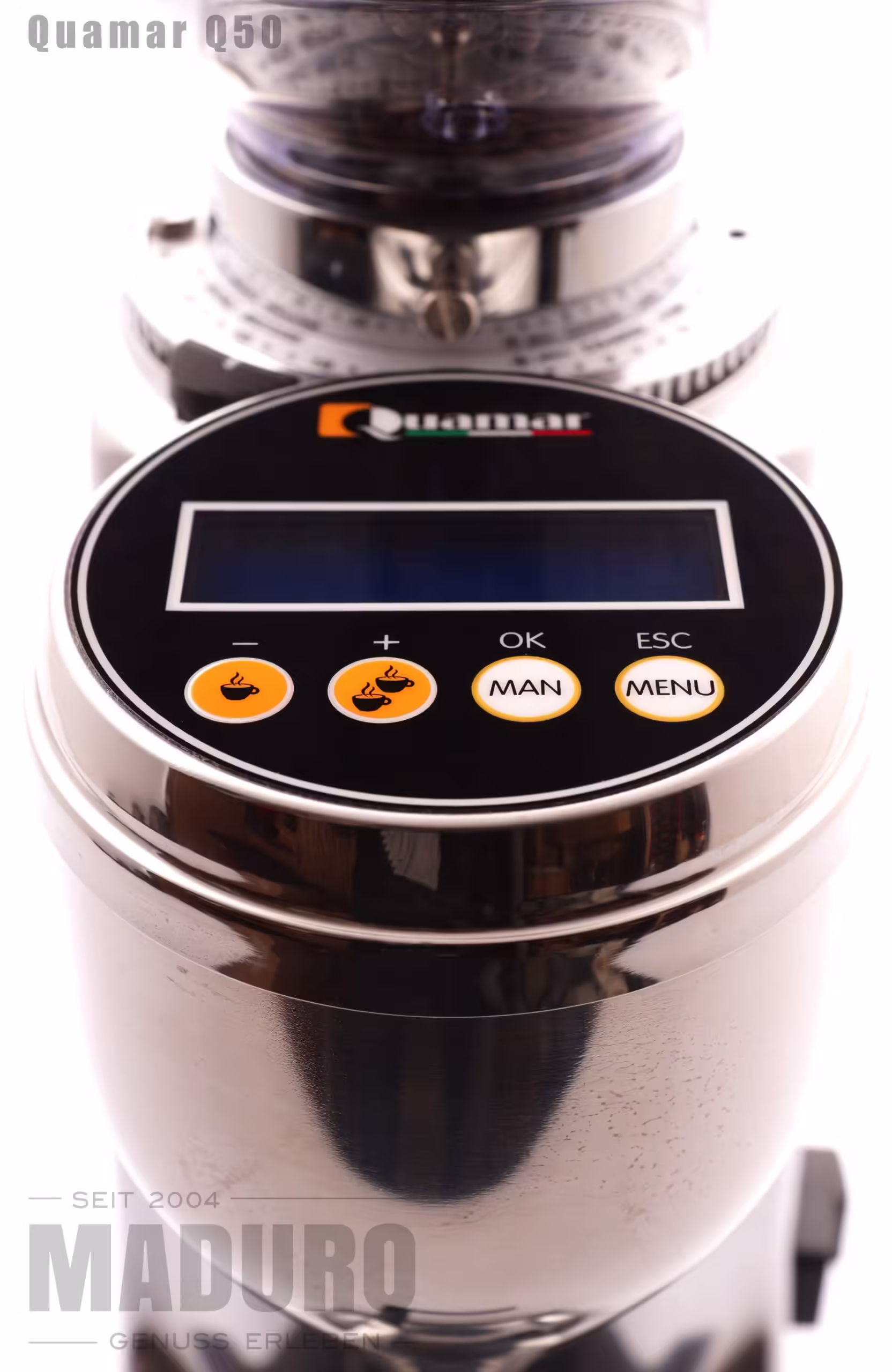 Die Mühle von Quamar verfügt über einen leistungsstarken Motor und schwerem Aludruckguss Gehäuse, Mahlscheibendurchmesser 54 mm, Motor 200 Watt, pro Portion knappe 10 Sekunden Mahldauer, Mahlgrad in feinen Stufen sind gut einstellbar. Bedienung mittels Elektronik. Einstellbar für Ein- oder Doppelbezug sowie manuelle Dosierung.