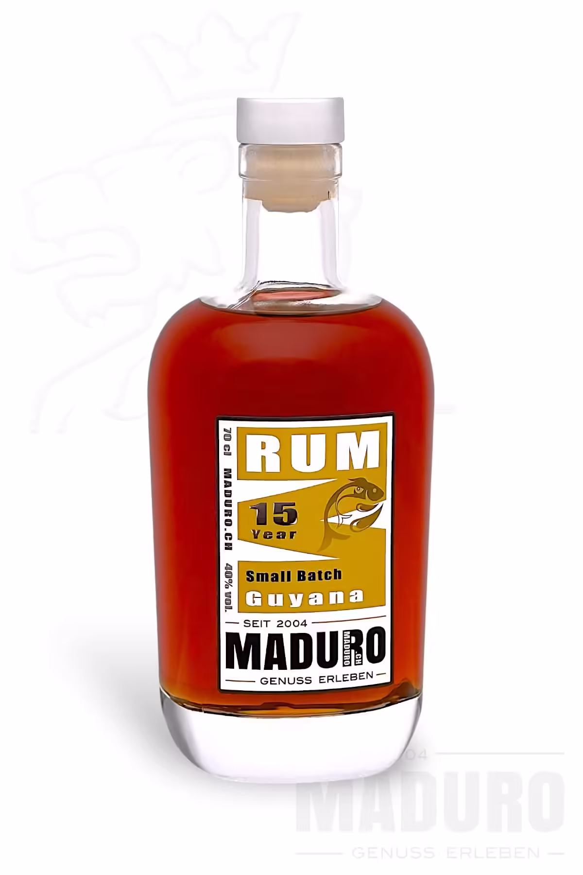 Der 15 Year Guyana – RUM MADURO auch bekannt als unser flüssiges Gold wird aus hochwertiger Zuckerrohr-Melasse gewonnen und meisterlich in traditionellen Kupferbrennblasen destilliert. Seine Vollendung findet der Rum Maduro in einer bis zu 15-jährigen Reifung in sorgfältig ausgewählten, kleinen Bourbonfässern aus amerikanischer Weißeiche. Durch die lange Ruhezeit und das kleinere Fassvolumen entsteht ein besonders intensiver Austausch zwischen Destillat und Holz, was das Herz jedes Rum-Enthusiasten höher schlagen lässt. Ein kraftvoller und dennoch eleganter Begleiter für besondere Momente.