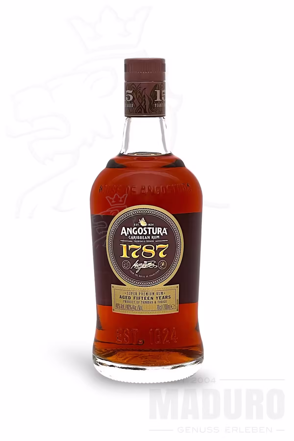 Entdecke den Rum Angostura 1787 „15 Jahre“, einen exquisiten Rum aus Trinidad, der die jahrzehntelange Tradition und Expertise von Angostura verkörpert. Seit mehr als 75 Jahren produziert Angostura Rum und hat sich den Ruf als einer der angesehensten Rumproduzenten der Welt erarbeitet. Dieser Rum reifte 15 Jahre lang in sorgfältig ausgewählten Eichenfässern und entfaltet dabei ein reichhaltiges und harmonisches Geschmacksprofil.