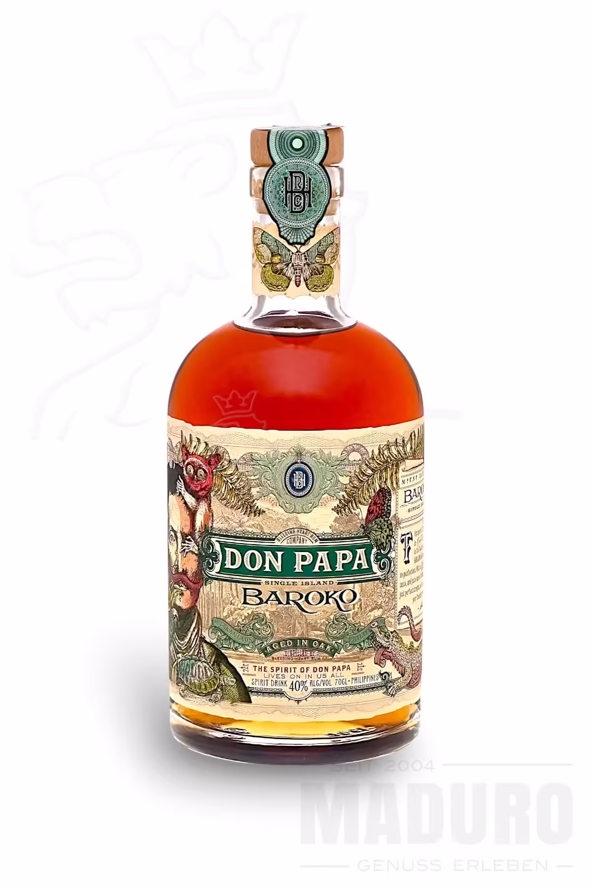 Don Papa Rum ist ein exklusiver philippinischer Rum, der 2012 von Stephen Carroll ins Leben gerufen wurde. Carroll, ein britischer Unternehmer, entdeckte während einer Reise nach Bacolod die herausragende Qualität des Zuckerrohrs aus der Region und beschloss, einen Premium-Rum zu kreieren. Der Name „Don Papa“ ehrt Dionisio Magbuelas, bekannt als Papa Isio, einen philippinischen Revolutionär des 19. Jahrhunderts, der für seinen Mut und seine Entschlossenheit bekannt war.
