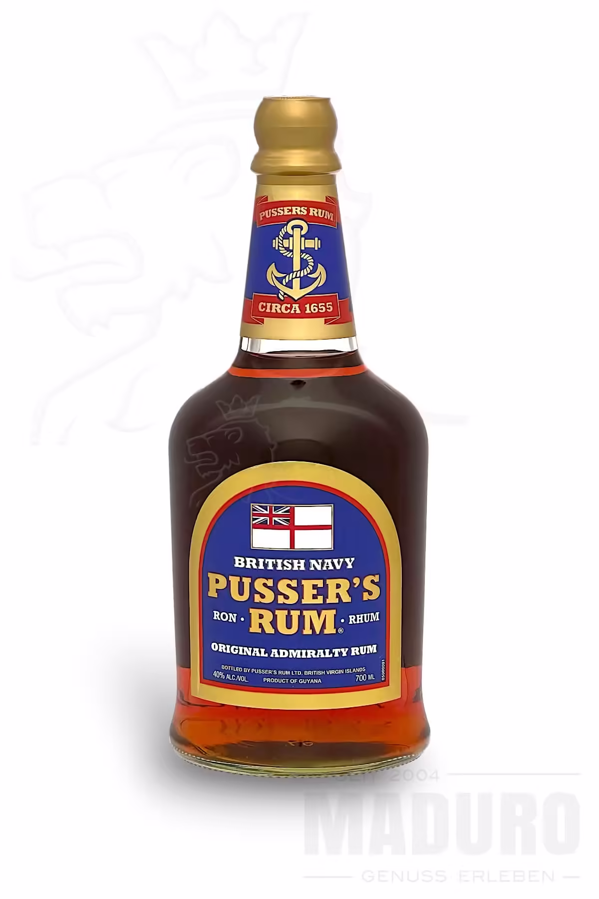 Pusser’s Rum ist ein traditionsreicher Navy Rum, der tief in der Geschichte der britischen Royal Navy verwurzelt ist. Der Name „Pusser“ stammt vom Zahlmeister („Purser“) der Marine, der für die tägliche Rum-Ration an Bord zuständig war – eine Tradition, die von 1655 bis zum „Black Tot Day“ am 31. Juli 1970 bestand. Die tägliche Ration an Rum für Seeleute der britischen Royal Navy, die als „tot“ bezeichnet wurde, betrug traditionell etwa 1/8 Pint (ca. 71 ml) pro Tag.