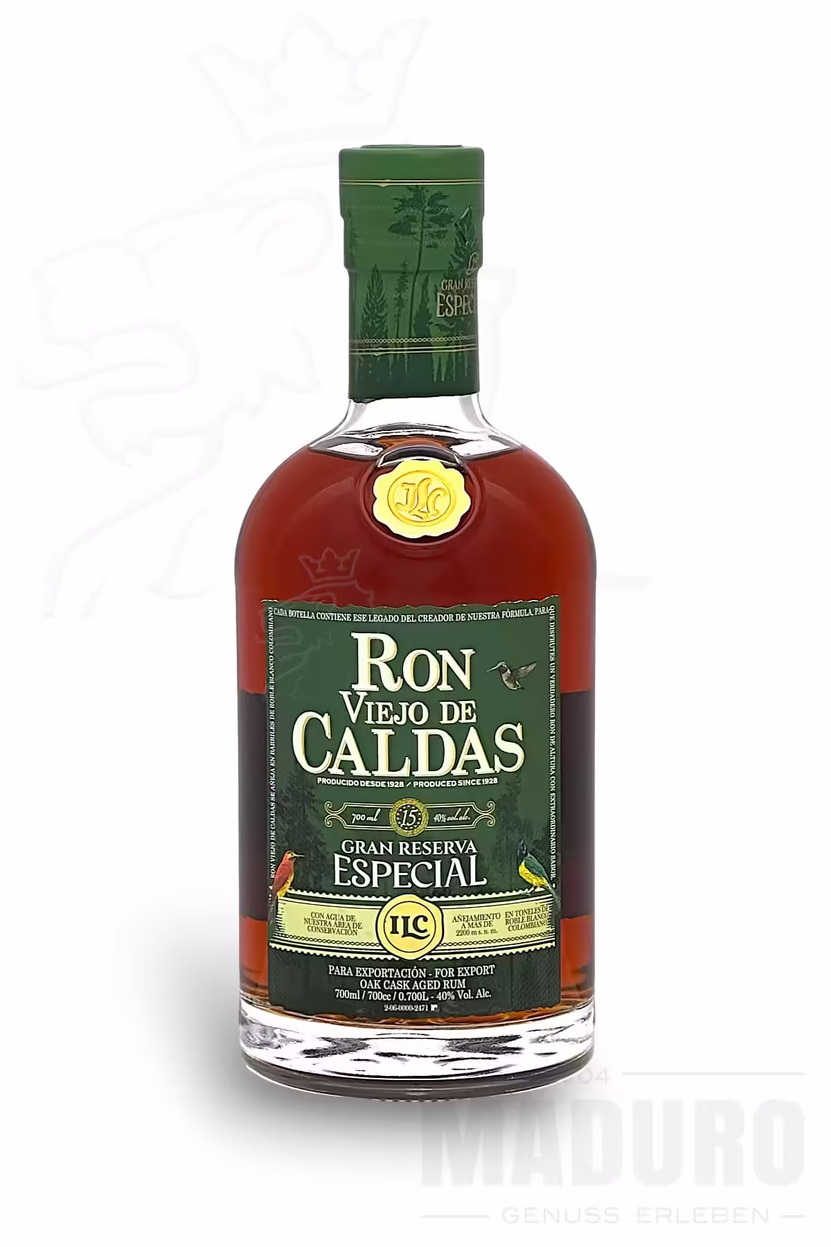 Der Ron Viejo de Caldas 15 Jahre Gran Reserva Especial ist ein wahrer Klassiker aus den Höhen der kolumbianischen Anden. Produziert von der renommierten Industria Licorera de Caldas, spiegelt dieser Premium-Rum die perfekte Balance zwischen Tradition und Handwerkskunst wider. Auf einer Höhe von über 2.000 Metern reift er unter optimalen Bedingungen in amerikanischen Weißeichenfässern. Diese Umgebung, kombiniert mit reinstem Quellwasser aus den Bergen, verleiht dem Rum seinen unverwechselbaren Charakter.