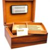 Achten Sie darauf, dass der Humidor aus hochwertigem, massivem Holz besteht, idealerweise mit drei quer zueinander verarbeiteten Schichten. Diese Struktur gewährleistet Stabilität, verhindert Verzug und sorgt für die nötige Atmungsaktivität, die für die richtige Luftzirkulation wichtig ist. Die Eckverbindungen sollten verzahnt und gefräst werden, um eine lange Haltbarkeit zu gewährleisten.