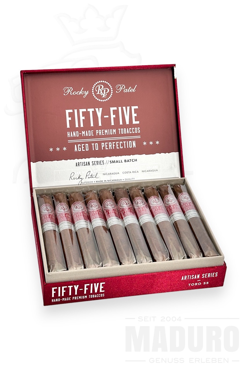 Die Rocky Patel „Fifty-Five“ ist eine Zigarrenlinie, die anlässlich des 55. Geburtstags von Rocky Patel entwickelt wurde und für ihre einzigartige Form und ausgewogene Geschmacksprofile geschätzt wird. Die Zigarre zeichnet sich durch ein nicaraguanisches Deckblatt aus, das ihr ein ansprechendes Äussern verleiht. Als Umblatt dient ein Costa-Rica-Tabak, der harmonisch mit der Einlage aus sorgfältig ausgewählten nicaraguanischen Tabaken kombiniert wird.