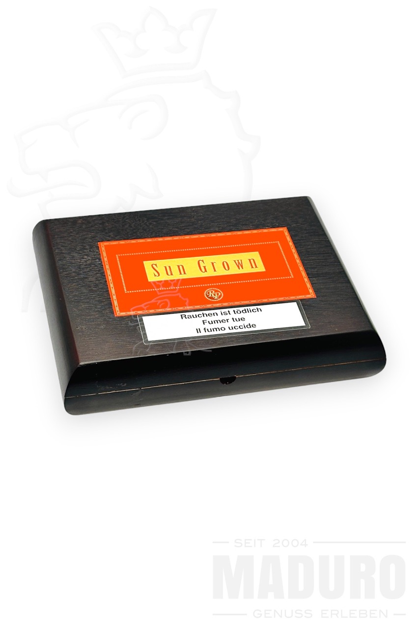 Rocky Patel „Sun Grown“: ist eine kräftige bis vollmundige Zigarrenlinie, die für ihre ausgewogene Mischung und reichhaltigen Aromen geschätzt wird. Das Deckblatt besteht aus einem fünf Jahre gereiften ecuadorianischen Sun Grown Sumatra-Tabak, der der Zigarre eine natürliche Süsse und eine subtile Würze verleiht. Als Umblatt dient ein nicaraguanischer Tabak, der die Struktur und Tiefe des Geschmacksprofils unterstützt. Die Einlage setzt sich aus einer sorgfältig ausgewählten Mischung von sieben Jahren gereiften Tabaken aus Nicaragua und der Dominikanischen Republik zusammen, die für ihre kräftigen und komplexen Aromen bekannt sind. Diese Kombination führt zu einem Rauchgenuss mit Noten von ZypresseWasabi und Schwarzkümmel, die sich harmonisch verbinden und ein reichhaltiges, befriedigendes Erlebnis bieten. Die „Sun Grown“ Linie hat in der Zigarrenwelt Anerkennung gefunden und wurde mit einer Bewertung von 92 Punkten ausgezeichnet.