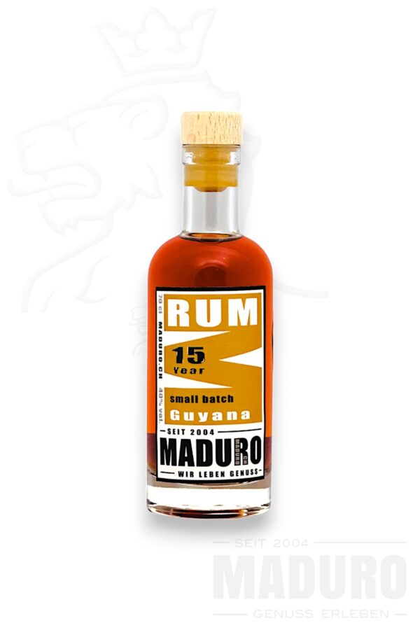 Rum aus Guyana – Ein Hochgenuss für Kenner Ein kleiner geografischer Exkurs in die faszinierende Welt des Rums führt uns nach Guyana, genauer gesagt in die renommierte Region Demerara. Viele Rum-Kenner würden sagen: „Demerara? Ah, das ist Musik in meinen Ohren!“ Denn genau hier wird durch den erhöhten Zuckeranteil in der Melasse ein Rum erschaffen, der in Aroma und Intensität seinesgleichen sucht. Dieses flüssige Gold, geboren aus Zuckerrohr-Melasse und meisterlich destilliert in glänzenden Kupferbrennblasen, findet seine Vollendung in bis zu 15 Jahren Reifung in gemütlichen kleinen Bourbonfässern aus amerikanischer Weißeiche. Ein Genuss, der jedes Rum-Herz höher schlagen lässt! Er duftet: In der Nase entfaltet sich eine angenehme Süße, die intensiv mit Bourbon-Vanille und Lakritze harmoniert, verbunden mit verführerischen Toffee- und Gewürznoten. Im Gaumen: Entwickelt sich eine kräftige Bourbon-Vanille-Note, gefolgt von einer dezenten Süße und einer feinen eichenen Holznuance. Der Abgang endet mit einer würzigen, dunklen Toffee-Note, die den Genuss perfekt abrundet. Inhalt: 20cl, Alkoholgehalt: 40% vol.